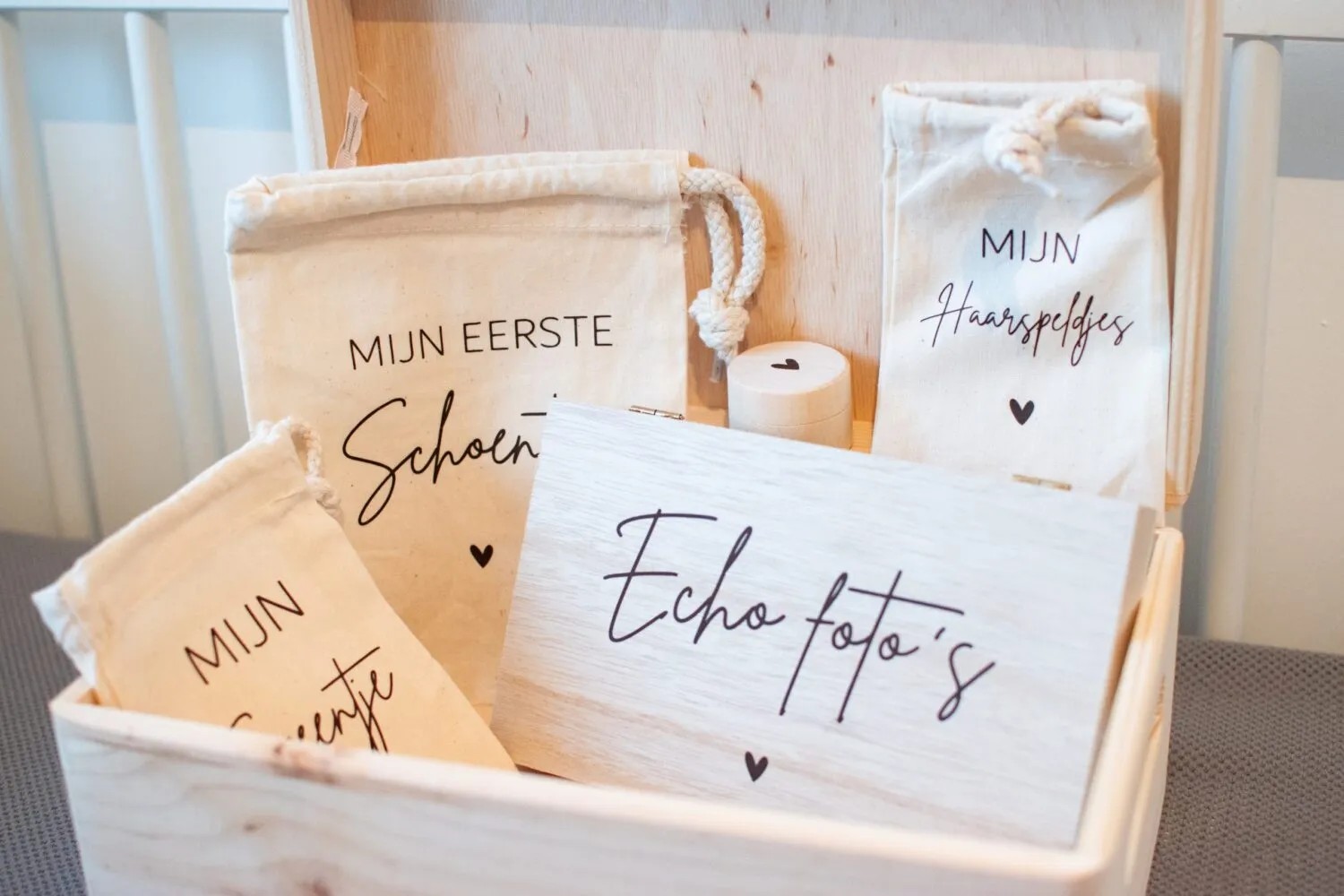 Bewaarzakjes zijn ideaal om de spullen van jouw kind netjes te bewaren en op te bergen. Bijvoorbeeld voor; haarspeldjes, schoentjes, haarlokje, sieraad, tandjes, navelstreng, geboortekaartjes, ziekenhuisbandje, geboortepakje, speentje en knuffel. De zakjes zijn van canvas gemaakt en hebben verschillende afmetingen.