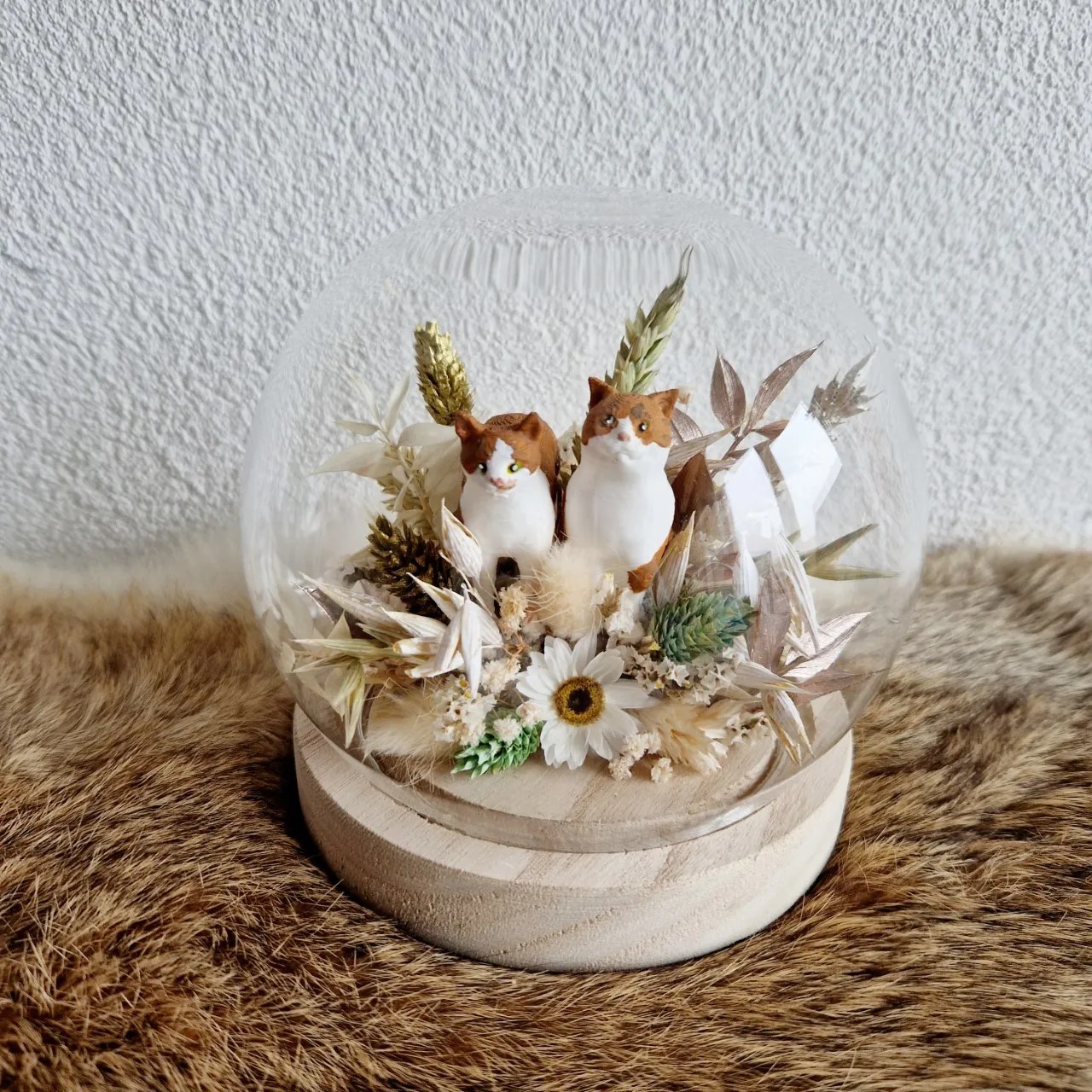 De glasdome kan besteld worden met polaroid foto of met een 3D huisdier of knuffel. De 3D huisdieren/knuffels hebben een langere levertijd. Minipiece maakt de 3D huisdieren, vraag gerust van te voren wat de precieze levertijd is!
