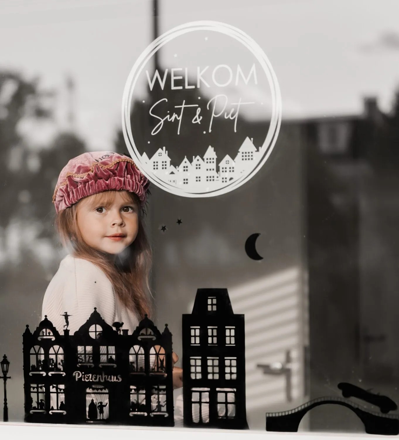 Welkom Sint & Piet raamsticker verkrijgbaar in verschillende kleuren! Op 19 november komt Sinterklaas aan in Nederland. Hoe leuk is het dan hem welkom te heten met deze prachtige raamsticker. De raamsticker wordt van vinyl gemaakt, deze raamsticker kun je op het raam plakken door middel van transfertape (bijgeleverd).